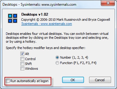 Sau khi tải về, bạn tiến hành giải nén, rồi kích hoạt ngay tập tin Desktops.exe để sử dụng. Ở hộp thoại đầu tiên, chọn Agree, còn ở cửa sổ hiện ra sau đó tiếp tục chọn phím tắt để chuyển đổi qua lại giữa các màn hình. Xong, nhấn OK.