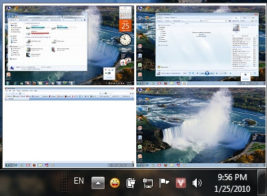 Trong quá trình sử dụng, một biểu tượng Desktops sẽ hiển thị dưới khay hệ thống. Để chọn màn hình làm việc thì ngoài việc dùng phím tắt, còn có thể nhấn chuột trái vào biểu tượng này, rồi chọn Select Desktop > bấm ô cần dùng. Đặc biệt, bạn còn có thể biết được tình hình các tác vụ trên cả 4 desktop bằng các cửa sổ thu nhỏ.
