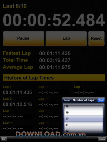 Lap Timer HD for iPad là ứng dụng miễn phí dùng để đo lap timer tiện ích trên tablet.